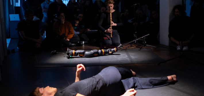 disarming II performance Do. 2.10.2025, 18:00 Uhr, esc medien kunst labor disarming II erkundet die Beziehung zwischen Mensch, Robotik und Umwelt. In einer offenen Umgebung begegnen sich eine Tänzerin, eine Flötistin und ein aus seiner Verankerung gelöster Industrieroboter auf gleicher Höhe. Der Roboterarm ReBel lernt mit stereophonem Hören und Widerstandsmessungen neue Bewegungsweisen. Die Tänzerin Eva-Maria Kraft […]